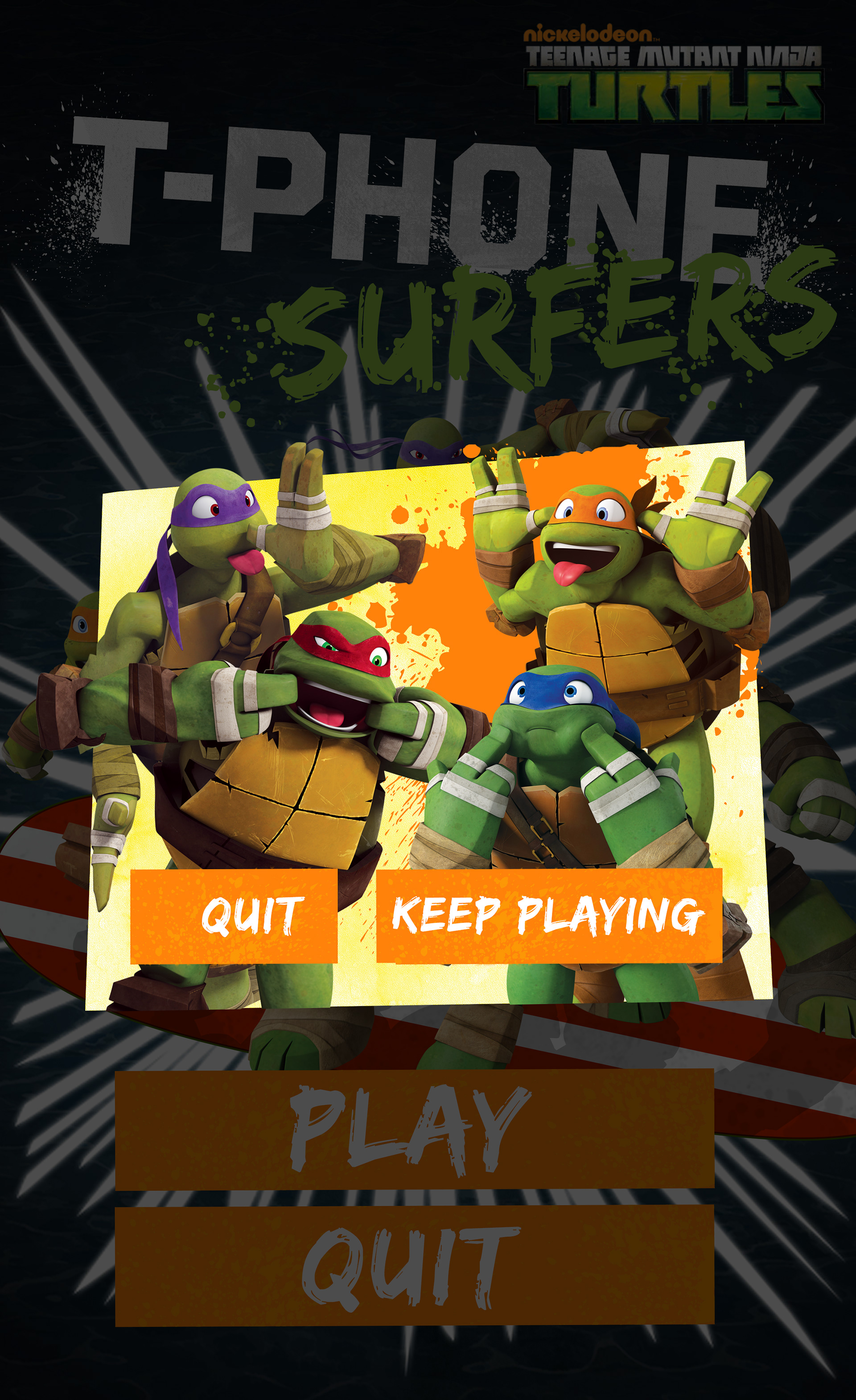 T-Phone surfers was a marketing game for Nickelodeon. They had given out a select number of mobile devices that resembled the T-Phone that the TMNT used in the show. On this mobile device they were able to play the game, and also view downloadable content.